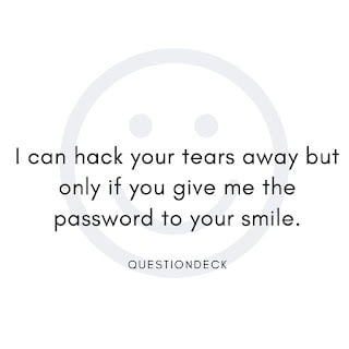 I can hack your tears away but only if you give me the password to your smile